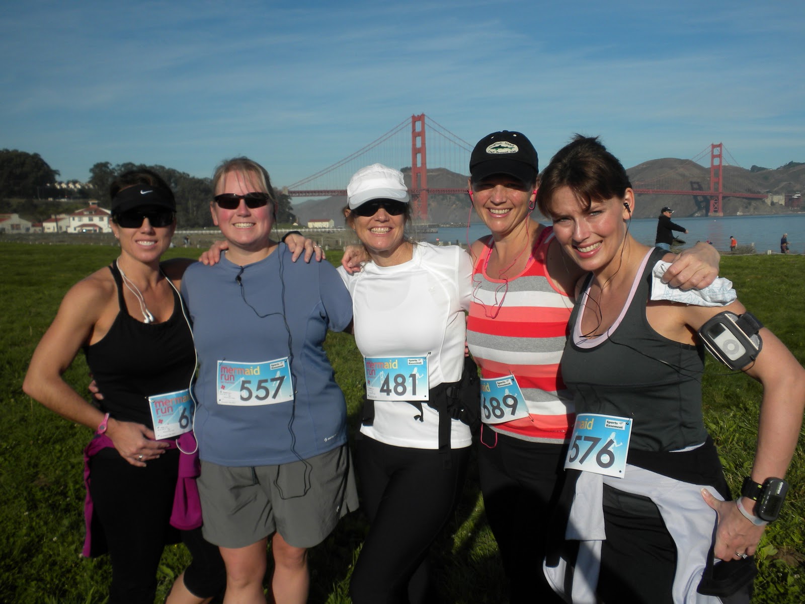 Today was the Mermaid all woman's 10K race in San Francisco. This is a race I have been training for for quite a few months now. I had 4 friends that did the race with me including my friend Teresa (TQ) who flew in from Arizona! You could not of asked for a better day to be running in San Francisco. The course was along the water, which is my favorite run anyways....but doing it as a race made it even better. I had 3 goals.